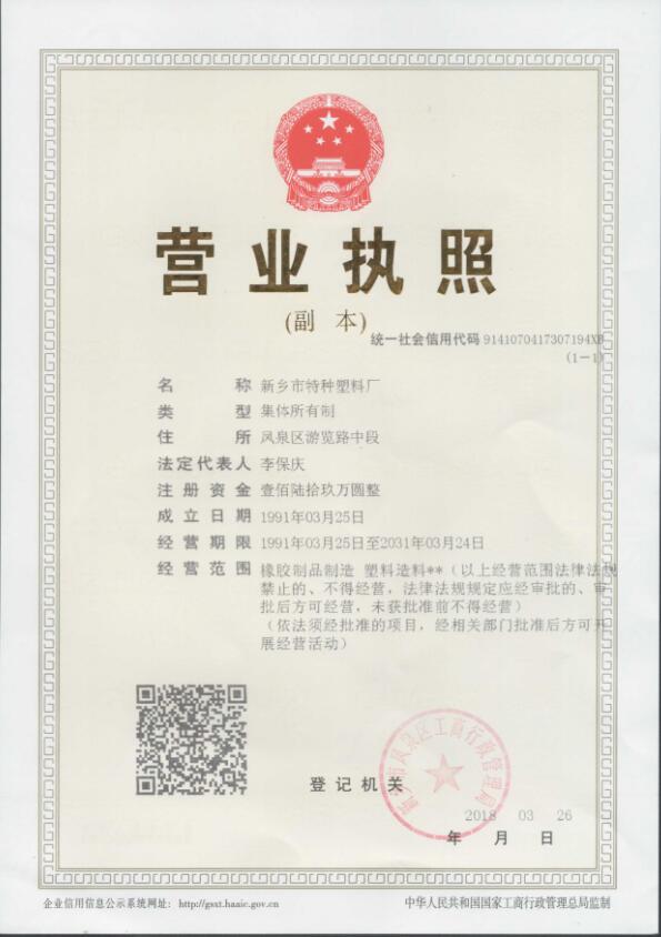 新鄉(xiāng)市特種塑料廠成立于1991年,位于河南省新鄉(xiāng)市鳳泉區(qū),現(xiàn)有10000平方米和20000平方米兩處生產(chǎn)基地,緊鄰京廣鐵路、京港澳高速、長(zhǎng)濟(jì)高速,交通十分便利。二十余年來(lái)專注于PVC塑料改性領(lǐng)域,是PVC擠出料、NBR/PVC橡塑料、ABS/PVC合金料、等PVC改性塑料的專業(yè)生產(chǎn)廠家,我公司產(chǎn)品主要應(yīng)用于汽車、電器、建材、童車玩具、礦用設(shè)備等領(lǐng)域?! 」疽浴皩W⑵焚|(zhì),引領(lǐng)行業(yè)先鋒”為企業(yè)理念,始終以質(zhì)量為先,質(zhì)優(yōu)價(jià)廉,鑄造優(yōu)質(zhì)品牌!我公司現(xiàn)有主要產(chǎn)品: PVC改性汽車密封條料、電纜鍍膜料、汽車裝飾條水切料、NBR/PVC橡塑共混汽車密封條料、ABS/PVC塑料合金汽車裝飾條料、空調(diào)回水管料、煤礦瓦斯抽放管導(dǎo)電料、建筑門窗封條料、PVC環(huán)保透明粒料、軟聚氯乙烯注塑料等,廣泛用于寶馬、奧迪、大眾、宇通、......更多>>